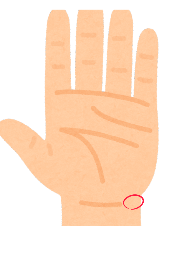 - 神門(手首の内側の、小指側のしわの上にあるくぼんだところ)~自律神経を整える、緊張をほぐす
